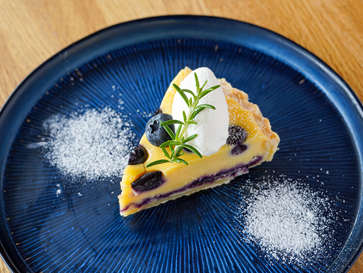 自家製ブルーベリージャムにチーズのフランを合わせた酸味のあるタルトです。