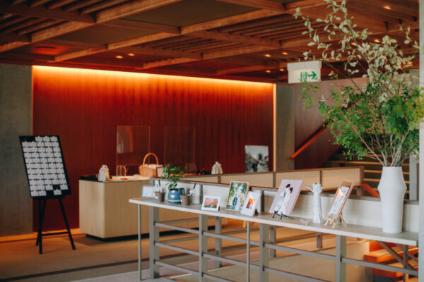 THE SORAKUENのウェルカムスペースにはいろんな色味・素材の壁があるので、