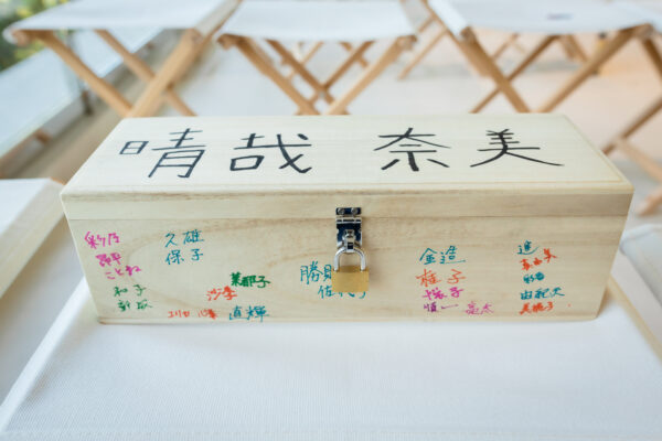 海外のウェディングからきた素敵なセレモニーで、ボックスの中にはワインなどをお入れいただき、結婚10周年や20周年までワインを寝かせていただき熟成させて、おふたりで歩んできた時を思い出していただきながら、熟成ワインをお召し上がりいただく、長い期間で楽しめる証明書です♡お入れいただく箱にはゲストの皆様からのメッセージやお名前を書いていただき、箱の中にはワインだけではなく、ゲストの方からおふたりへのお手紙やお二人の10年後、20年後のお手紙をお入れいただき、開けた時の楽しみにしていただきます♪