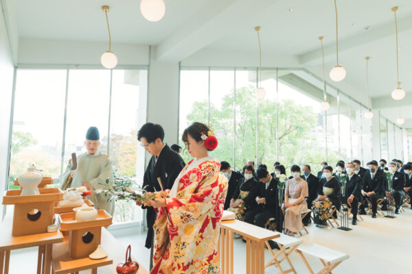 神前式は、親族創始が結びつく考えに則った儀式を通し、神様へおふたりの結婚を報告します。