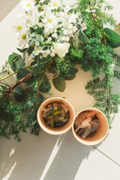 お好きな色や素材のリボンを結んでご用意いただくのがリボンシャワー