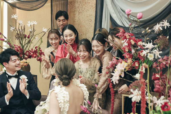 おふたりの目の前に大きなテーブルが無い分、ゲストの皆様との距離が近くなり
