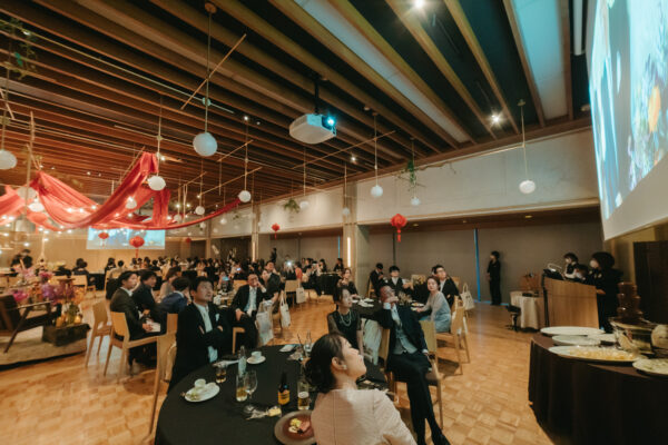 ゲストの皆様はご披露宴会場の大きなスクリーンで