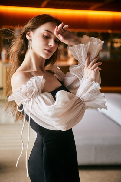 ブラックだけどかわいらしさとエレガンスさを兼ね備えた新しいブラックドレスです