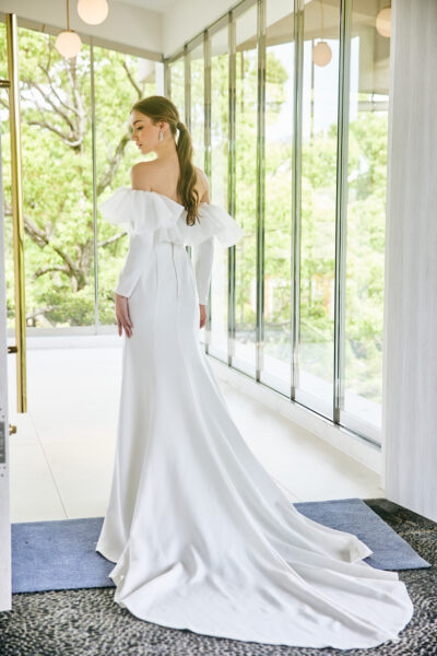 オフショルダーのスリーブは露出を控えたいご新婦様におすすめです◎