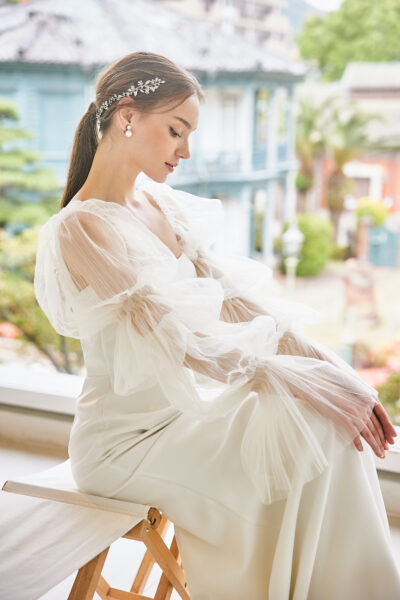 先ほどのスリーブとは違い透け感とボリュームのあるトレンドのスリーブが