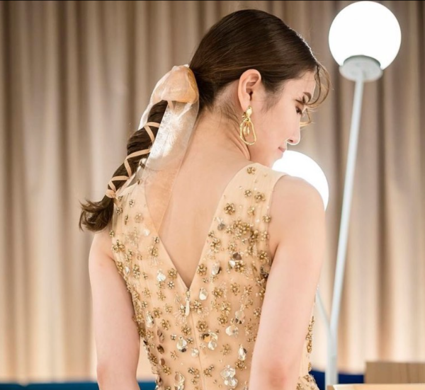リボンをつけて、女性らしいフェミニンさを引き出すこともできます♡