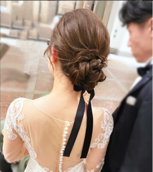 ドレスの色味と合わせてリボンを編み込んでも◎