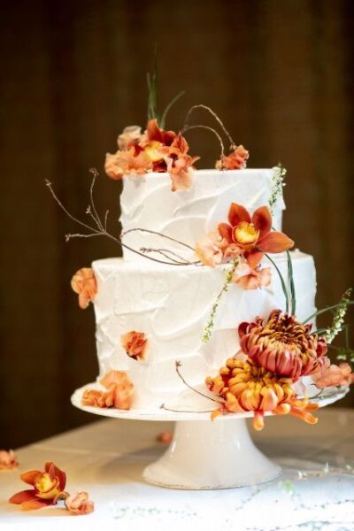生のお花をケーキにトッピングすると会場の装花とマッチして会場の統一感が生まれます🌹