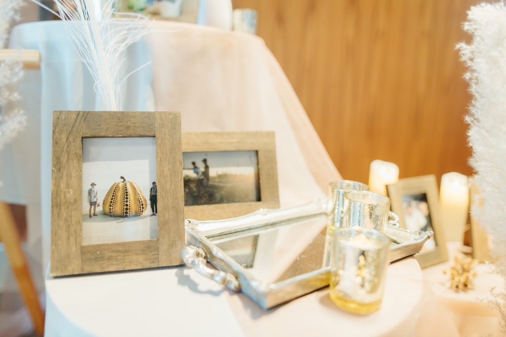 お二人のお持ちいただいたアイテムと組み合わせてコーディネートしてくれるので、思い出のお写真やお好きなアイテムももちろん一緒に飾っていただけます*