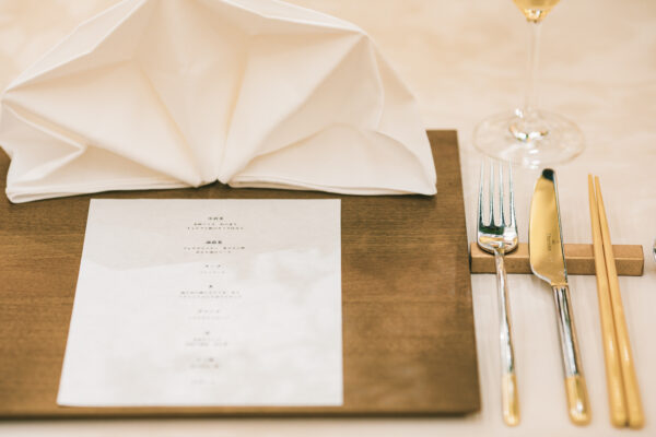 ナフキンを真ん中で結んでおり 海外ウエディングのようなテイストに!