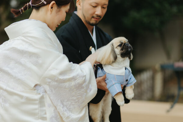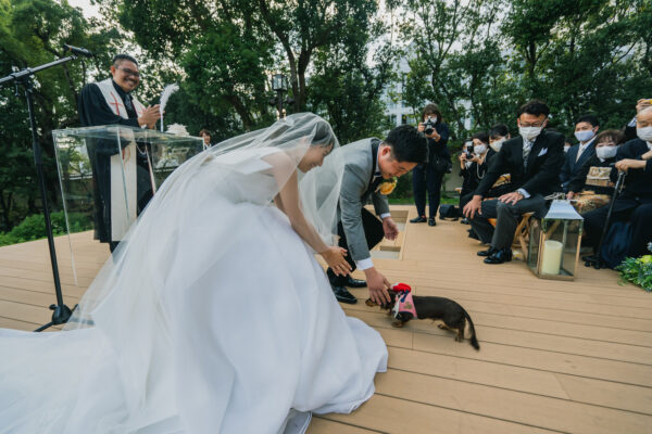 新郎新婦様の普段の様子が垣間見えるような、ペットとのあたたかい時間は