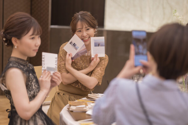 披露宴の席では向かって左側の席にご新郎様側、右側にご新婦様側のゲストでまとめます