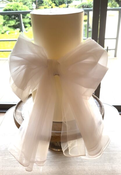 こちらも驚きの大きなリボンがついたウエディングケーキ‼