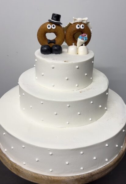 まずは、ドーナツ夫婦の乗ったウエディングケーキ♡