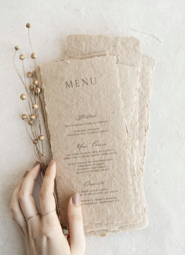 特に席札やメニュー表はゲストの皆様のお席に置いておくことが多いので、テーブルコーディネートに含まれパーティー会場の雰囲気を左右するアイテムです✴︎