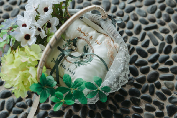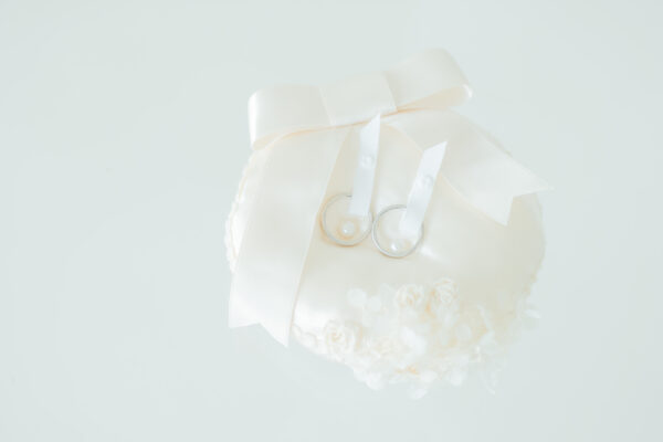 挙式で使う、お二人のたいせつな指輪をのせておくリングピロー♡