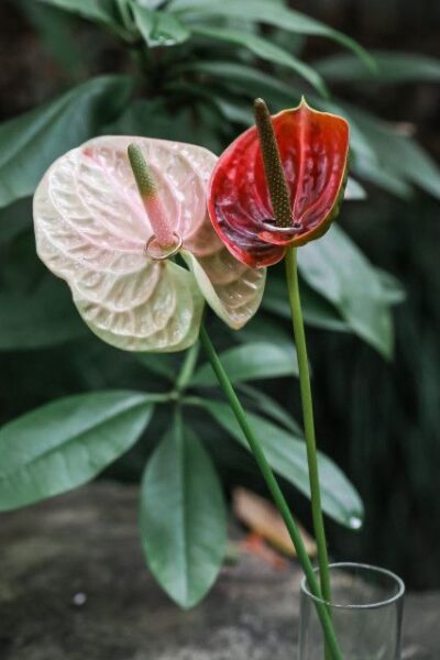 アンスリウムのお花にひっかけているリングピロー♡