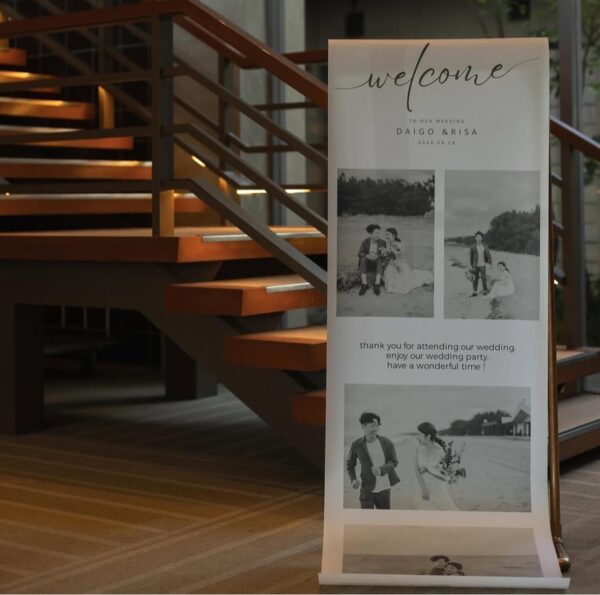 シンプルにお名前入りのウェルカムボードだったり、お二人の写真入りウェルカムボードも