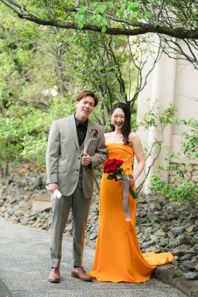 オレンジのドレスとバラのブーケがとってもぴったりでお似合いでした♡
