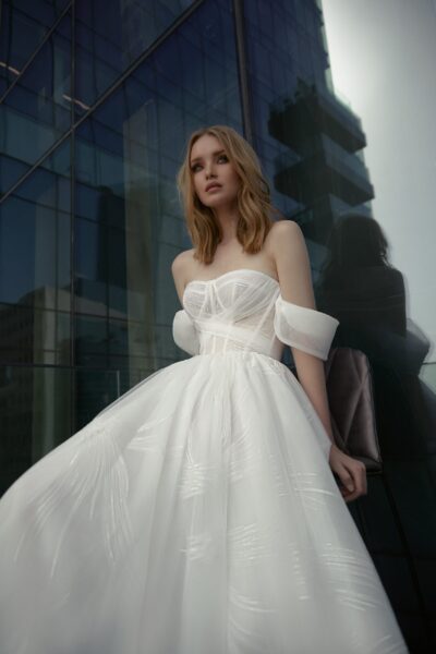 花嫁を引き立てるための洗練されたシルエットが特徴です
