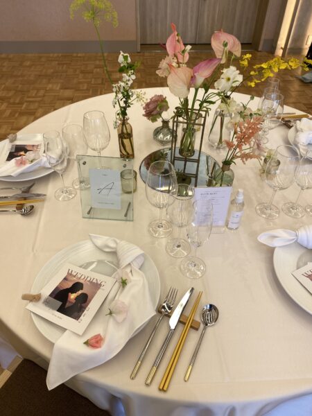 お花も合わさると、落ち着きのある上品なテーブルに仕上がります