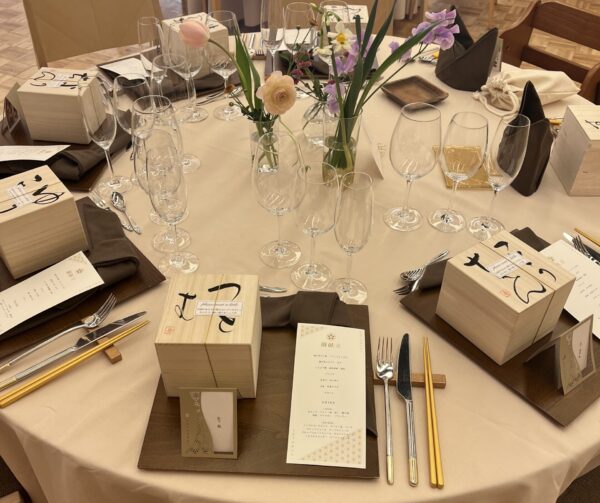 こちらは、引出物もテーブルコーディネートのひとつとして楽しむスタイル