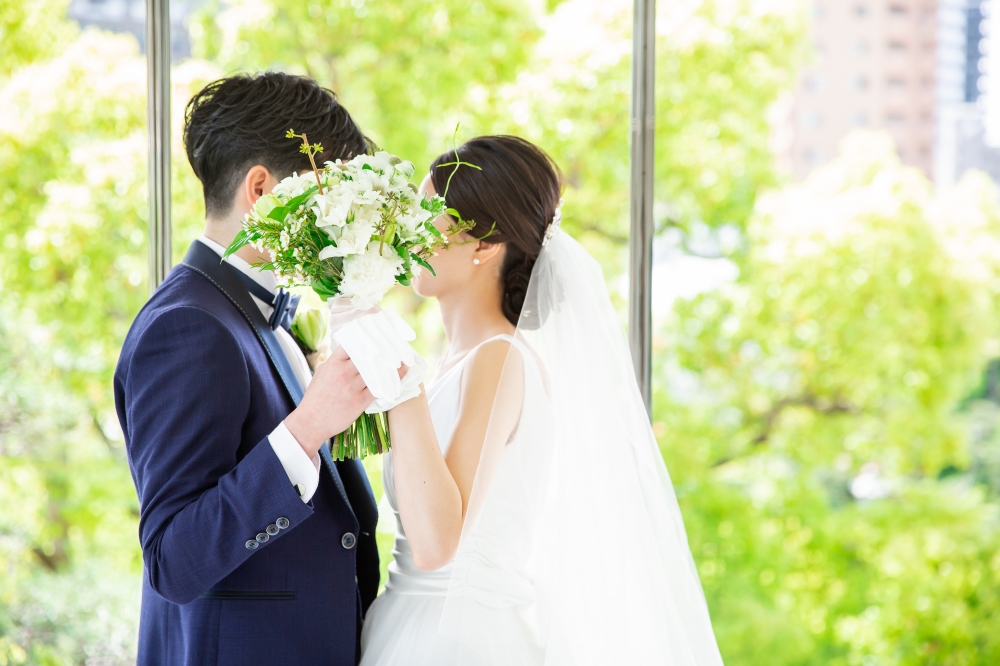 12本のバラに意味を込めて行う【ブーケセレモニー】という演出もロマンチックで素敵ですが、おふたりの好きなお花やその季節らしいお花を使用するのもお勧めです◎