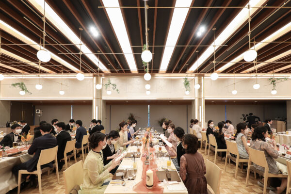 これまで円形のテーブルが定番だった会場のレイアウト