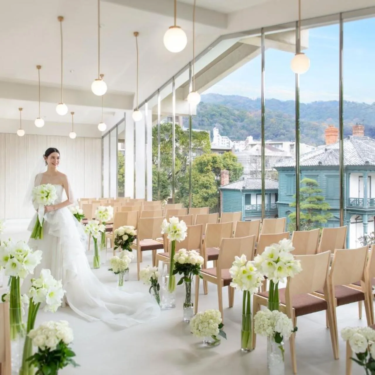 【緑と光の選べるチャペル体験】自然と光など温もり感じるチャペルにて、挙式入場を体験していただけます。テラスで行う挙式は、都心とは思えないほど開放的♪選べるチャペルで天候に左右されずセレモニーを!