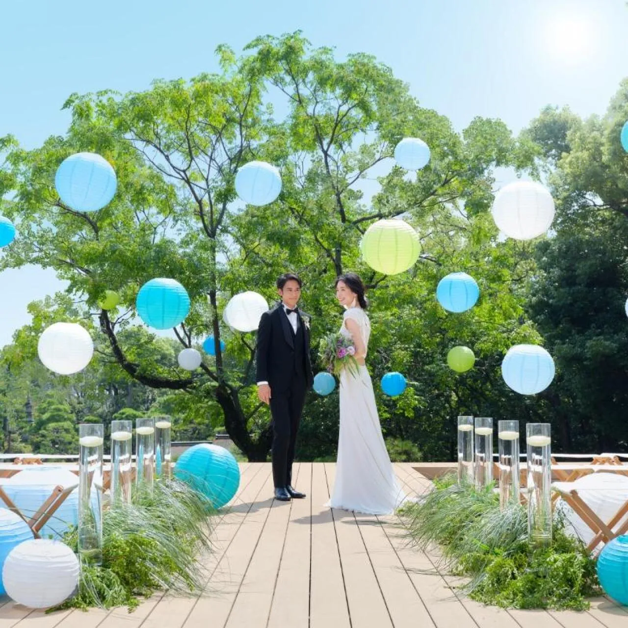 【テラス・屋内◆選べるセレモニー】緑と光の温もり感じるチャペルにて、挙式入場を体験!テラスで行う挙式は、都心とは思えないほど開放的♪ 「貸切会場」だからこそどちらを使うか当日まで悩める◇雨天時も安心
