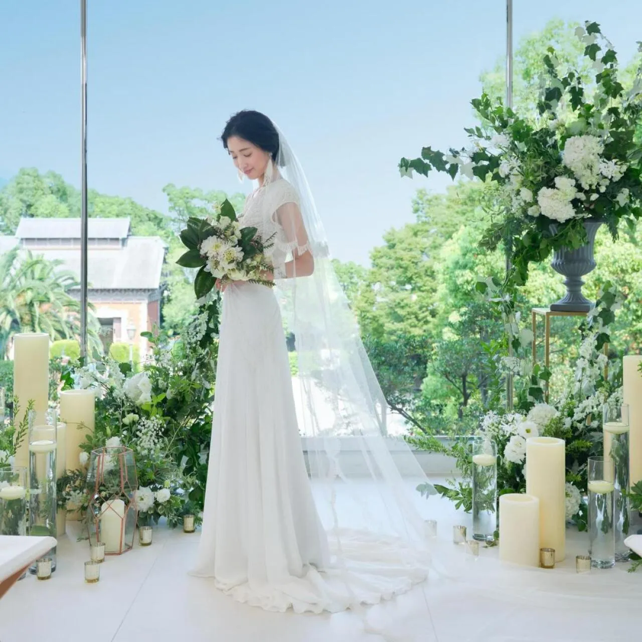 【テラス・屋内◆選べるセレモニー】緑と光の温もり感じるチャペルにて、挙式入場を体験!テラスで行う挙式は、都心とは思えないほど開放的♪ 「貸切会場」だからこそどちらを使うか当日まで悩める◇雨天時も安心