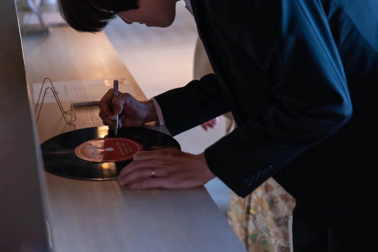 音楽にちなんでレコードにゲストの方にお名前を書いていただきました