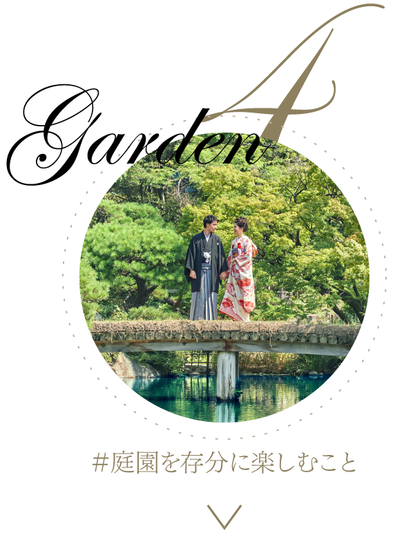 この絶好のロケーションを最大限に活かして、庭園を眺めながらのデザートビュッフェ、和装でのロケーションフォト